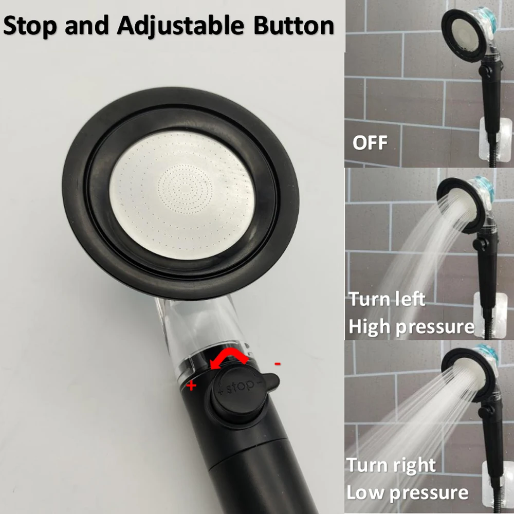Turbo Shower Head with Filter – 3 Modes & Stop Button
